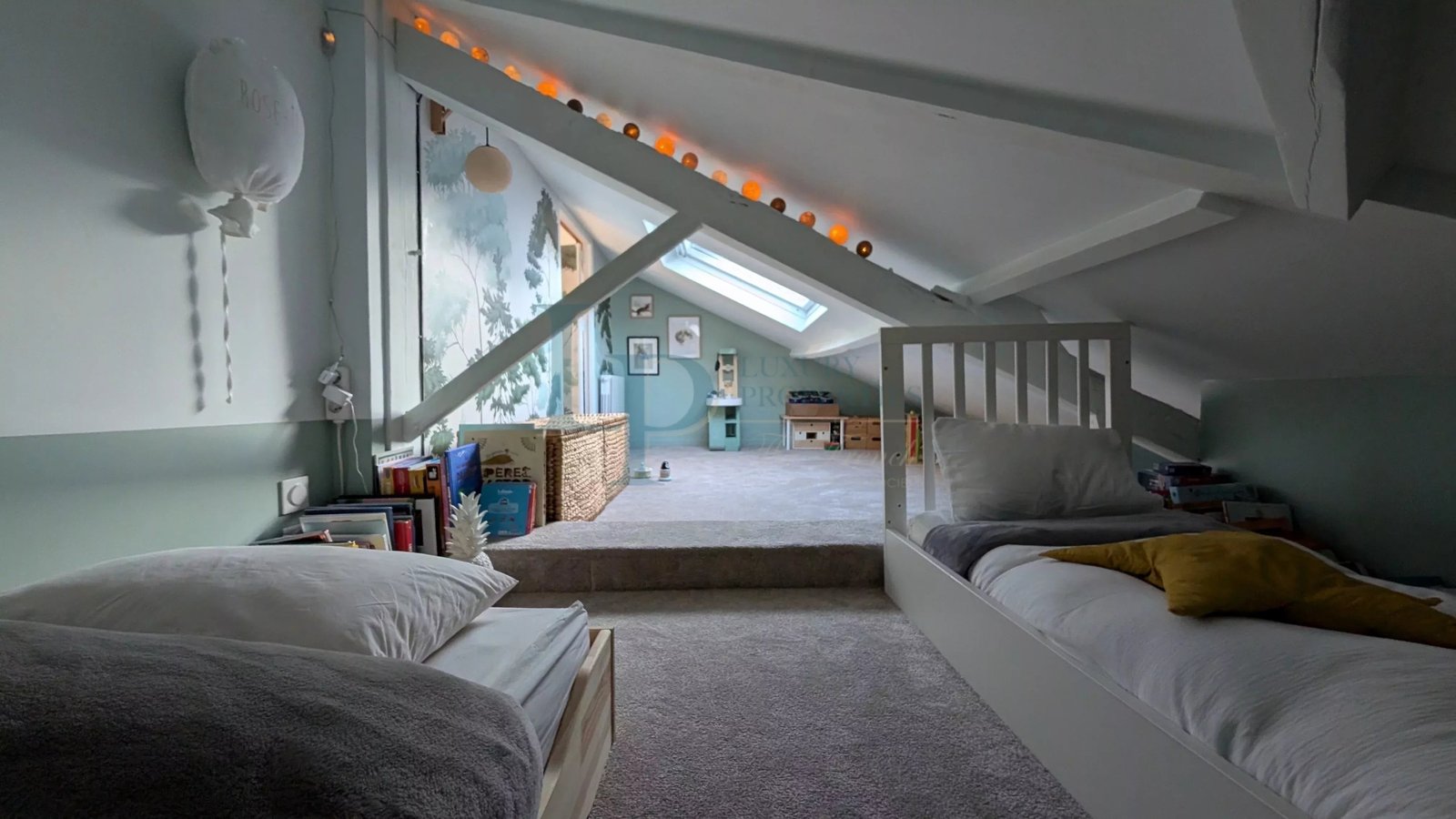 The apartment offers 89 m² Carrez and 110 m² floor area. The second floor also features a children’s bedroom and bathroom.