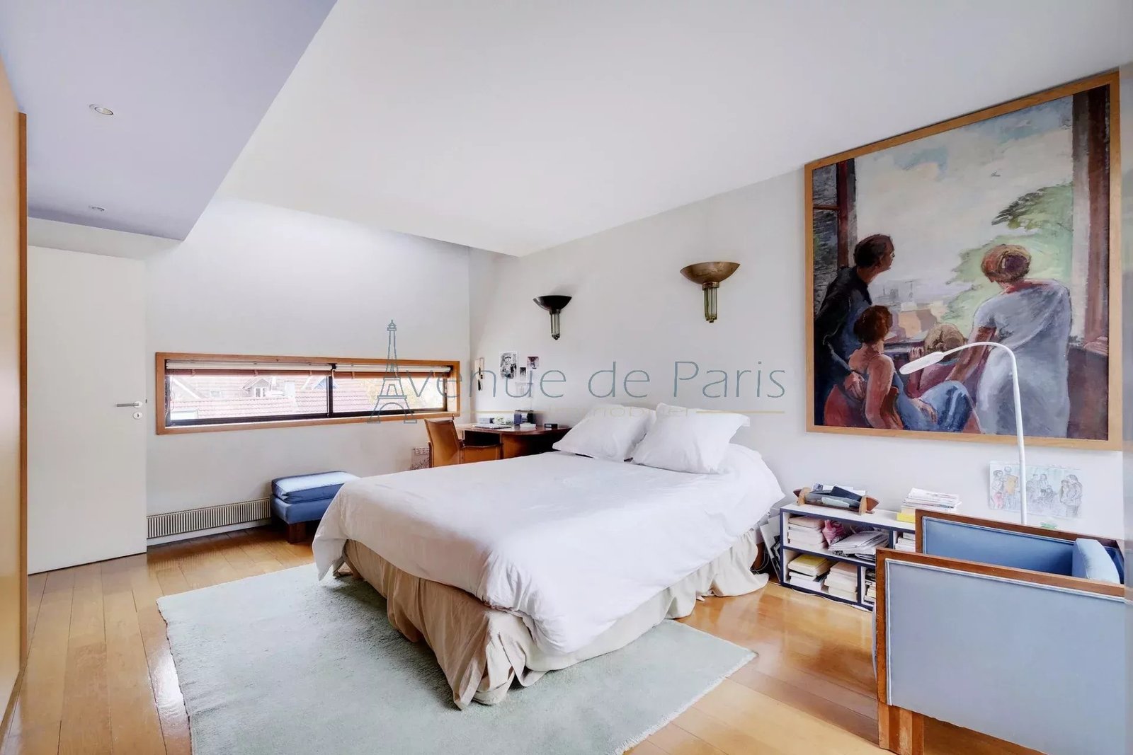 The second floor opens onto a convivial kitchen, followed by a dining room and a reading room. On this level, a vast terrace offers a truly Parisian outdoor setting for enjoying the warm weather,